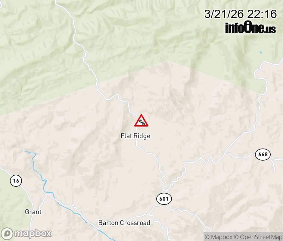 On Rt. 601 East in the County of Grayson, in the vicinity of NORTH, motorists can expect delays due to weather. Updated: Sat 3/21/26 10:16 PM EDT ![]() Updated: Sat 3/21/26 10:16 PM EDT |