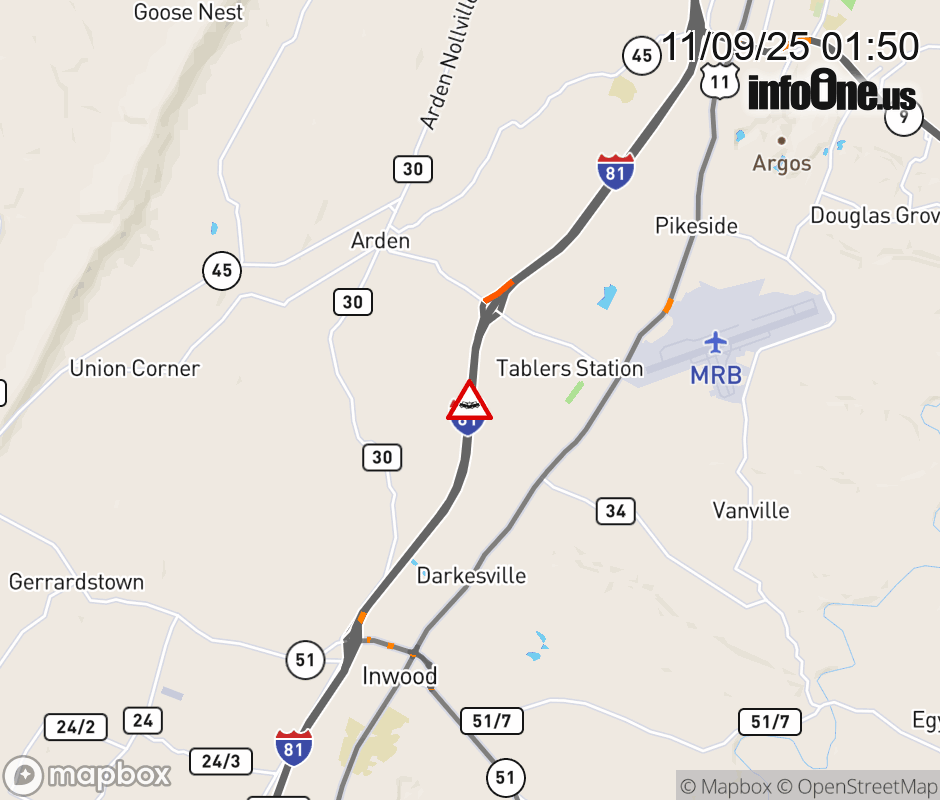 Vehicle Crash on I-81S at Mile Marker 7.5. Updated: Sun 11/9/25 1:50 AM EST ![]() Updated: Sun 11/9/25 1:50 AM EST |