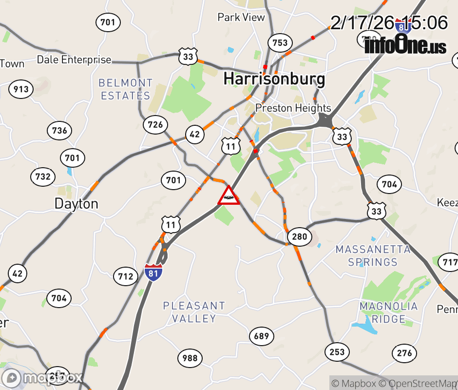 On I-81 at mile marker 245 in the County of Rockingham, motorists can expect delays due to a vehicle crash. The north exit ramp narrows. ![]() |