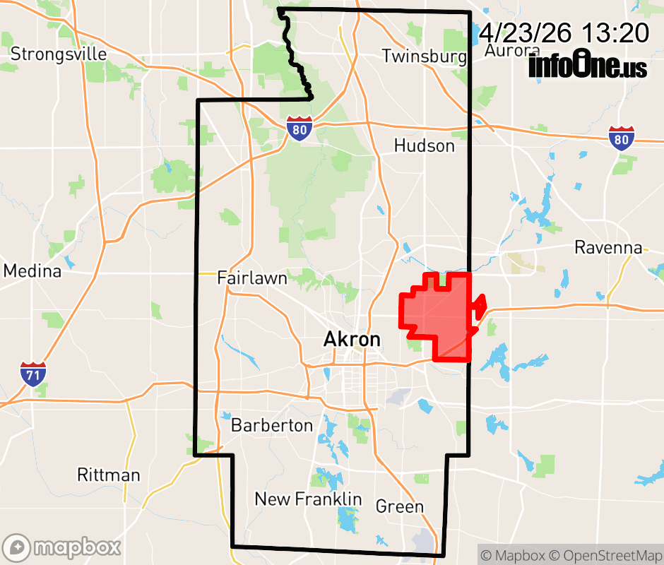 Summit County has 1 power outage affecting 1 customer. Ohio Edison 1 without power Akron: Customers affected: 19 (< 1%) Estimated repair: Sat 1:00 AM Updated: Fri 4/24/26 11:10 PM EDT ![]() Updated: Thu 4/23/26 1:20 PM EDT |