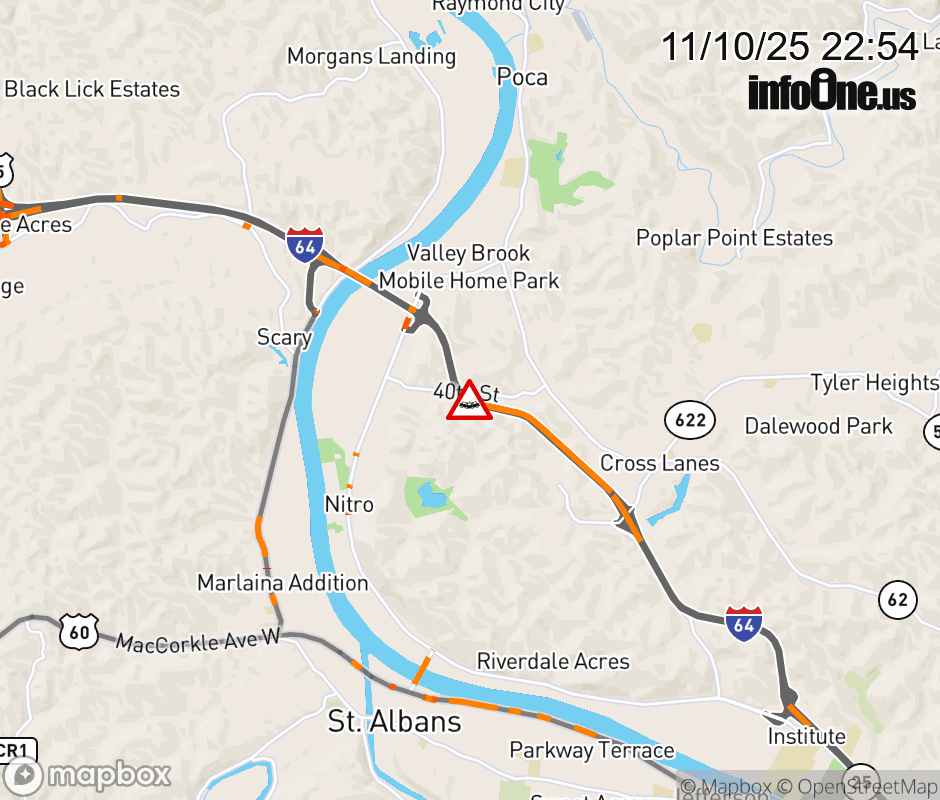 Canceled 11/11/25 1:20 AM Location: I-64 at MM 45.5, WV Accident.