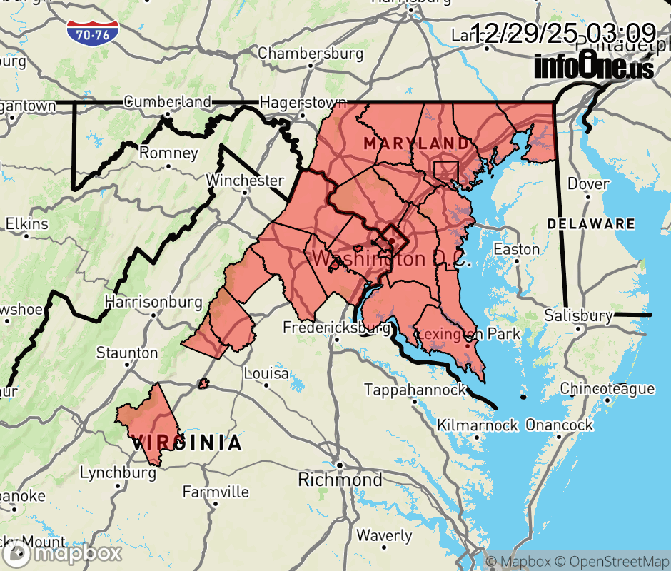 Canceled 12/29/25 10:59 AM Wind Advisory issued December 29 at 3:07AM EST until December 30 at 1:00AM EST by NWS Baltimore MD/Washington DC * WHAT... West winds 20 to 30 mph with gusts up to 55 mph expected. * WHERE... DC, central, north central, northeast, northern, and southern Maryland, and central, northern, and northwest Virginia. * WHEN... From 9 AM this morning to 1 AM EST Tuesday. * IMPACTS... Gusty winds will blow around unsecured objects. Tree limbs could be blown down and a few power outages may result. ![]() |