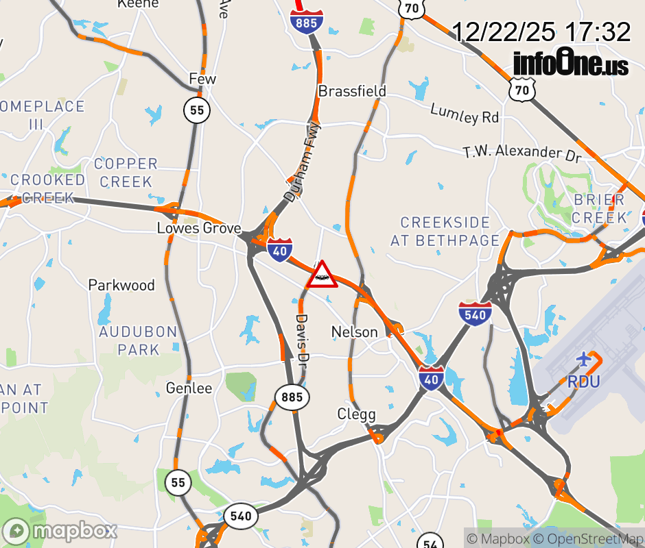 The right shoulder is closed at Exit 280 (Davis Dr). ![]() |