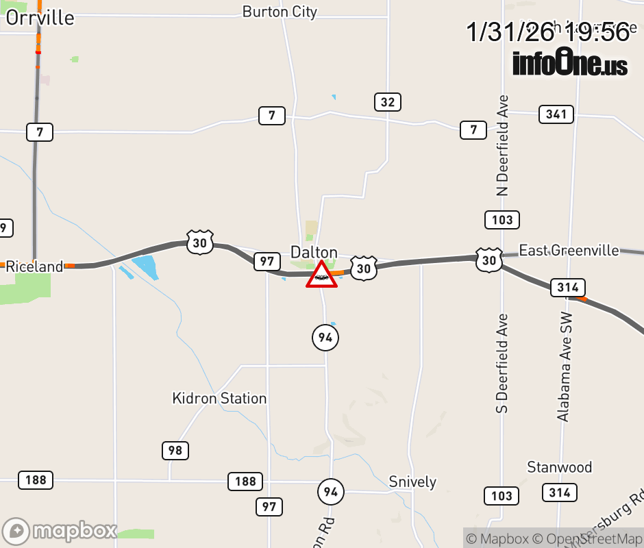 The left lane is closed on US-30 West at S Mill St, due to a crash. Updated: Sat 1/31/26 7:56 PM EST ![]() Updated: Sat 1/31/26 7:56 PM EST |