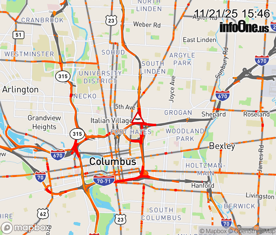 The right shoulder is blocked on Ramp I-71 South to I-670 West, due to a crash. ![]() |