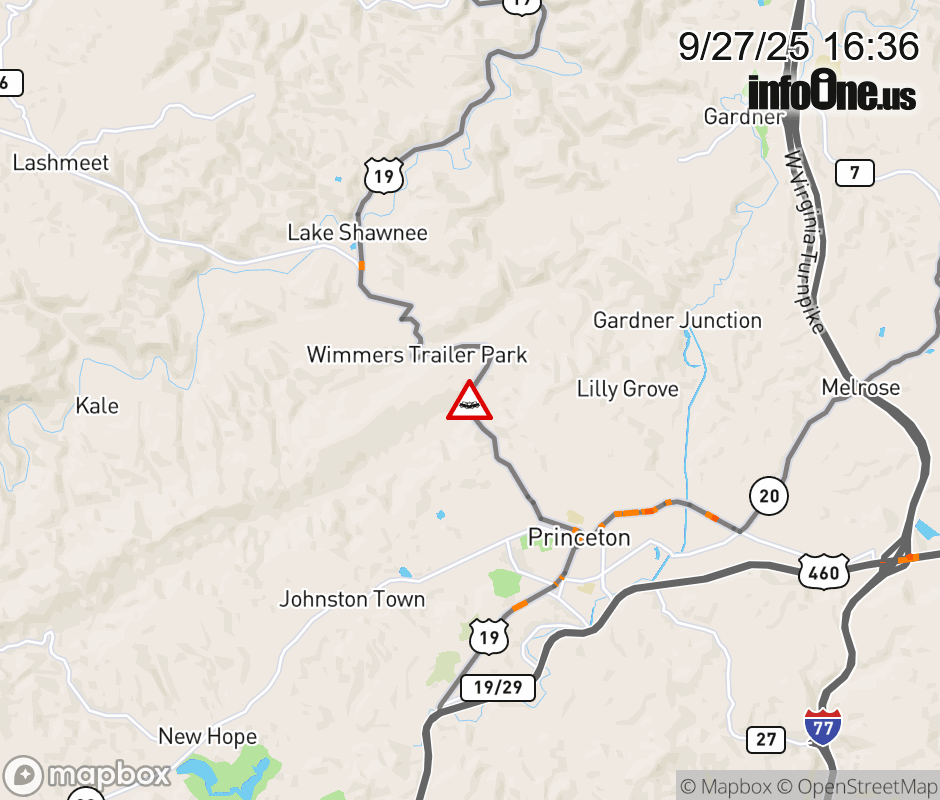 In Mercer County there is a Vehicle Crash on US-19N at Mile Marker 14.63. 1398 Beckley Road. ![]() |