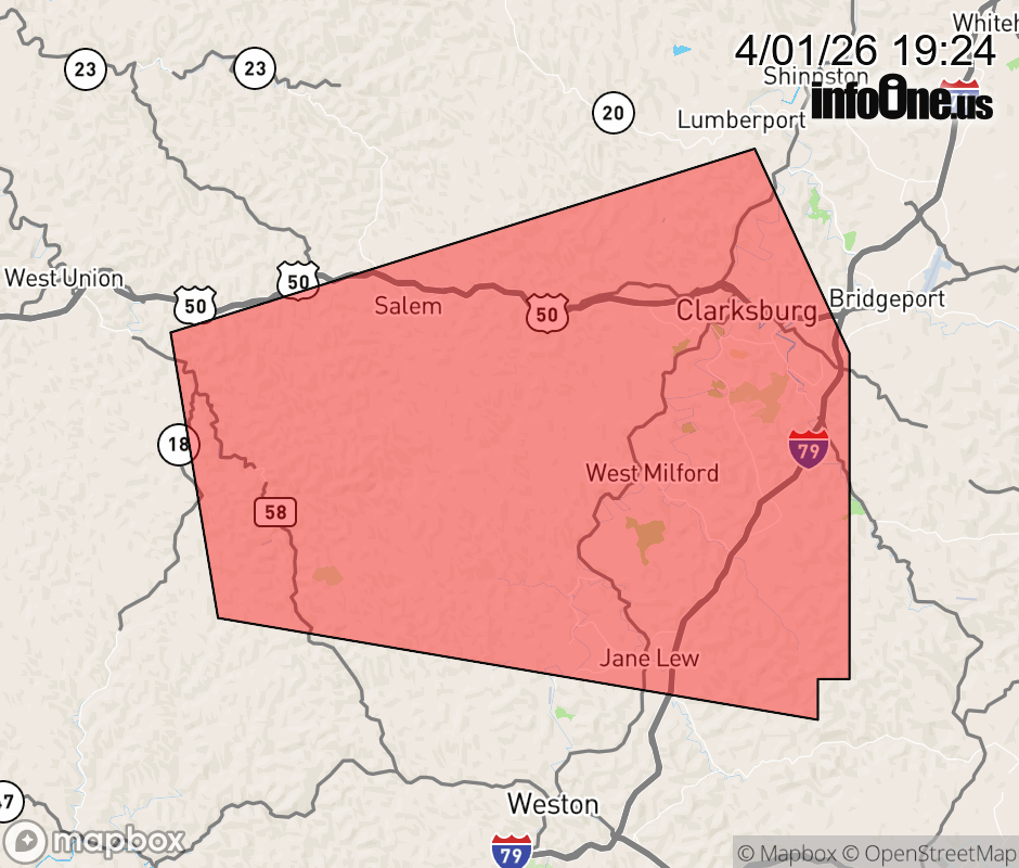 Canceled 4/1/26 7:39 PM Severe Thunderstorm Warning issued April 1 at 7:23PM EDT until April 1 at 8:00PM EDT by NWS Charleston WV At 722 PM EDT, a severe thunderstorm was located near Salem, or 13 miles northwest of Weston, moving east at 35 mph. HAZARD...60 mph wind gusts and penny size hail. SOURCE...Radar indicated. IMPACT...Expect damage to roofs, siding, and trees. Locations impacted include... Clarksburg, Stonewood, Nutter Fort, Salem, Anmoore, West Milford, Lost Creek, Jane Lew, New Milton, Avon, Wolf Summit, and Despard. ![]() |