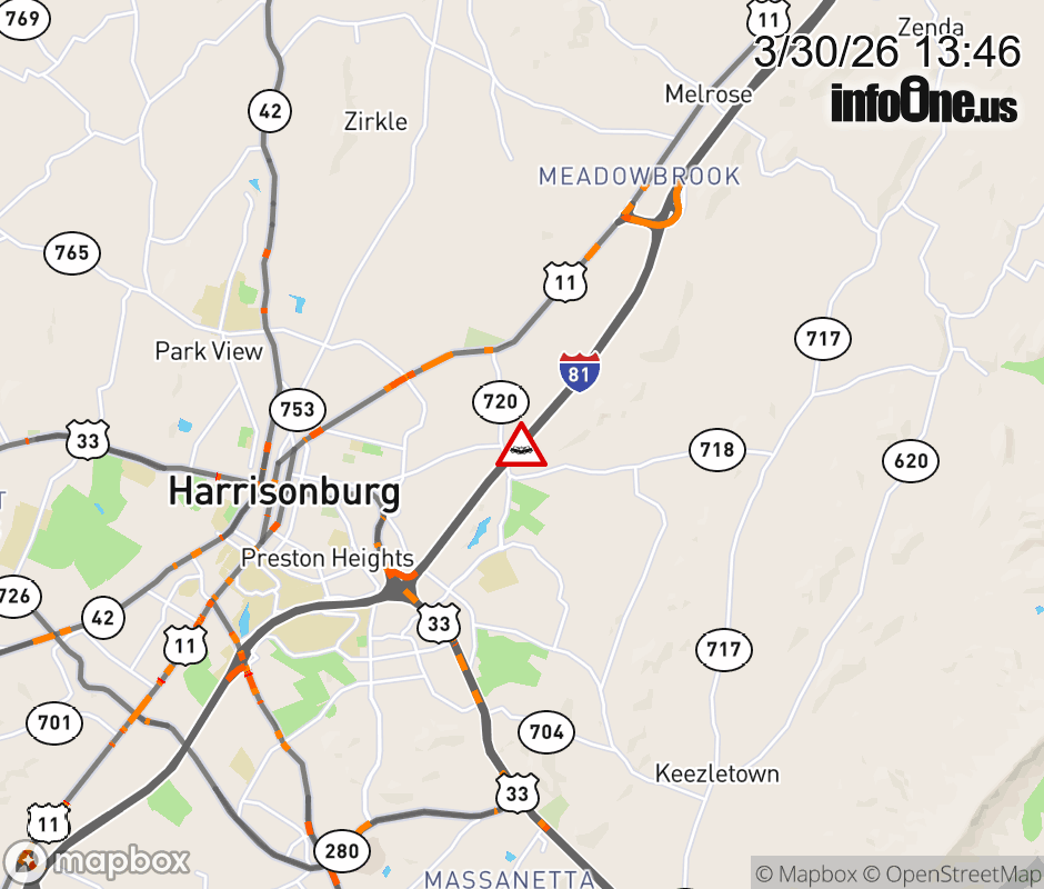 On I-81 at mile marker 249 in the County of Rockingham, motorists can expect delays due to a vehicle crash. The north right shoulder is closed. ![]() |