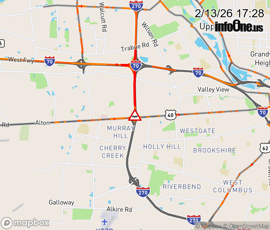 Shoulders are blocked on I-270 South at US-40/W Broad St West, due to a crash. Updated: Fri 2/13/26 5:28 PM EST ![]() Updated: Fri 2/13/26 5:28 PM EST |