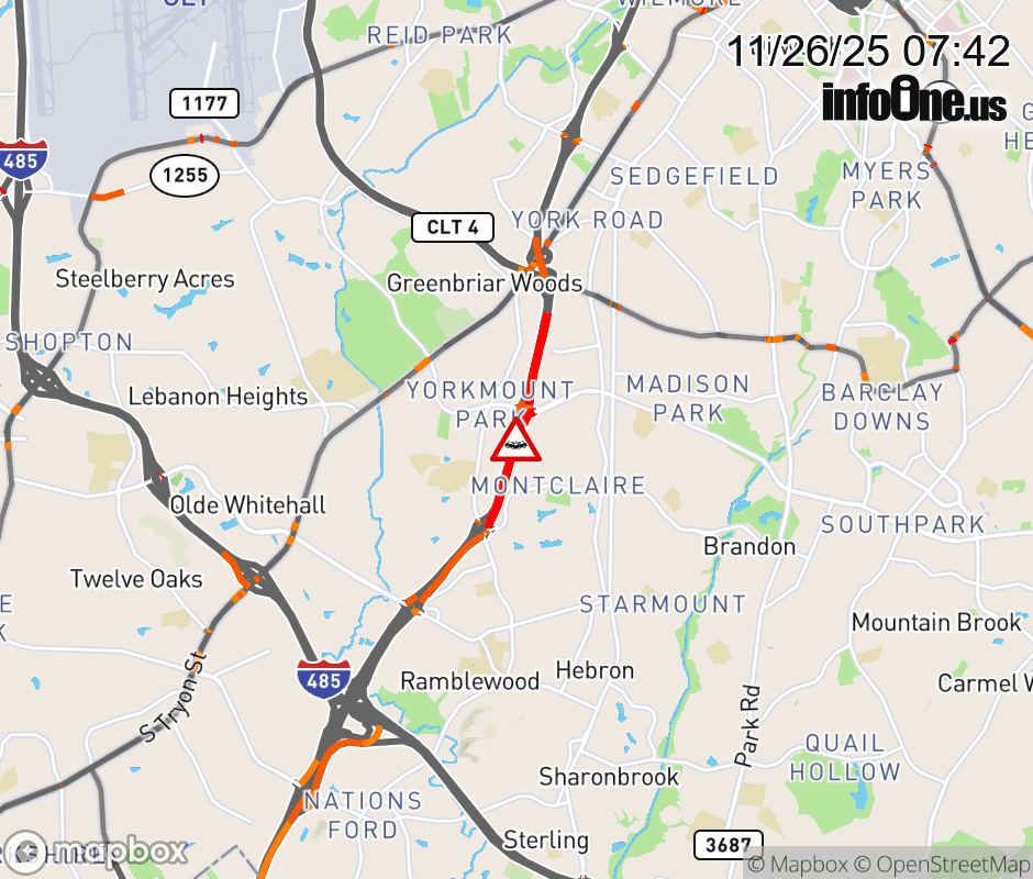 The right lane is closed near Exit 5 (Tyvola Rd.). ![]() |