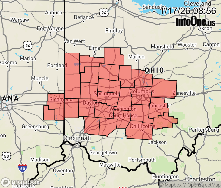 Canceled 1/17/26 11:00 AM Special Weather Statement issued January 17 at 8:55AM EST by NWS Wilmington OH Scattered snow showers are moving across the area this morning. Some challenging travel conditions will be possible with a sudden drop in visibility and a quick coating of snow. If traveling remain alert for changing road conditions. ![]() |