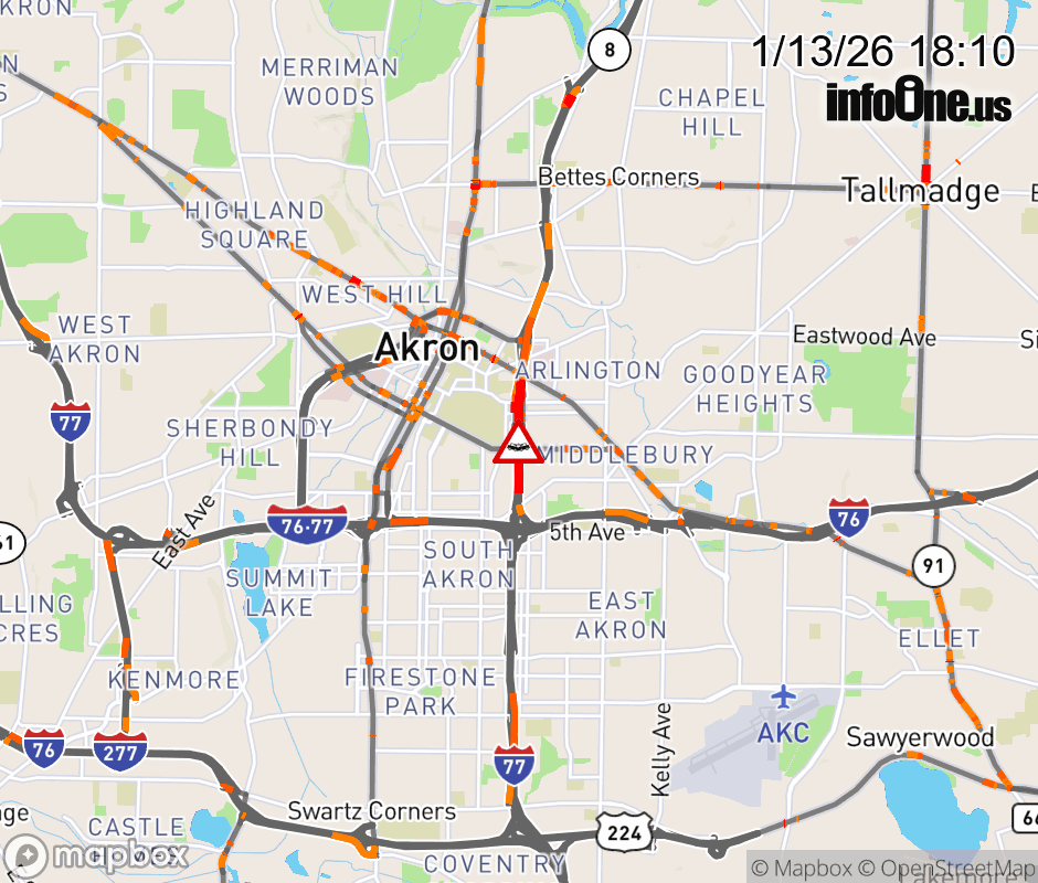 The right shoulder is blocked on SR-8 North at SR-18/Carroll St/Buchtel Ave, due to a crash. ![]() |