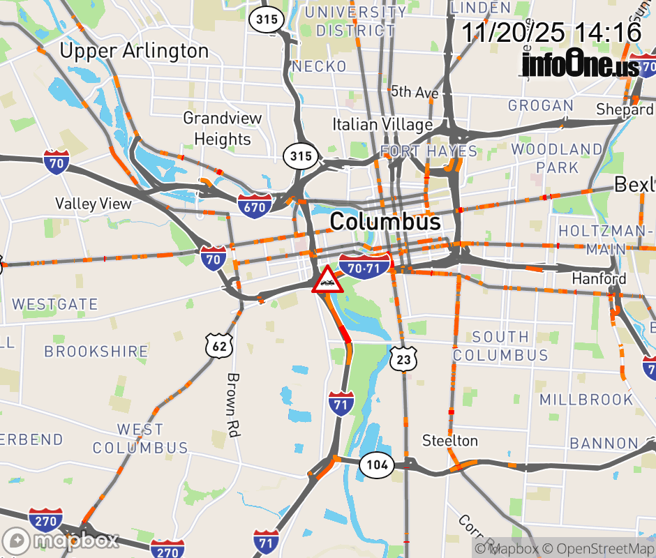 The left shoulder is blocked on Ramp I-71 South/I-70 West to I-71 South, due to a disabled vehicle. Updated: Thu 11/20/25 2:16 PM EST ![]() Updated: Thu 11/20/25 2:16 PM EST |