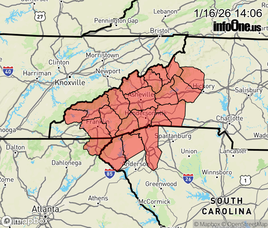 Canceled 1/17/26 1:00 AM Special Weather Statement issued January 16 at 2:04PM EST by NWS Greenville-Spartanburg SC A band of precipitation is expected cross the mountains of the Carolinas and northeast Georgia overnight tonight. The precipitation will likely start out as a mix of snow, sleet, and freezing rain, but mostly change over to all snow above 3500 ft and rain with patchy freezing rain in the valleys, before tapering off around daybreak Saturday. With temperatures hovering in the upper 20s to lower 30s, minor snow accumulations of 1 to 3 inches will be possible in the highest elevations, with spotty light ice accretions, mainly on elevated surfaces, in the valleys and near the Blue Ridge Escarpment. Clearing skies should allow temperatures to warm above freezing and thaw out most roads by midday Saturday. ![]() |