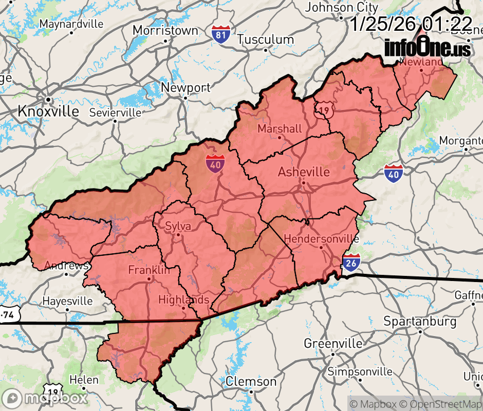 Canceled 1/25/26 11:48 AM Cold Weather Advisory issued January 25 at 1:21AM EST until January 26 at 10:00AM EST by NWS Greenville-Spartanburg SC * WHAT... Very cold wind chills as low as 7 below expected. * WHERE... The North Carolina mountains and Rabun County in northeast Georgia. * WHEN... From 4 AM to 10 AM EST Monday. * IMPACTS... The dangerously cold wind chills as low as 5 below zero could result in hypothermia or frostbite if precautions are not taken. Avoid prolonged exposure if possible and have a safe heating source, particularly for those who may experience power outages. ![]() |