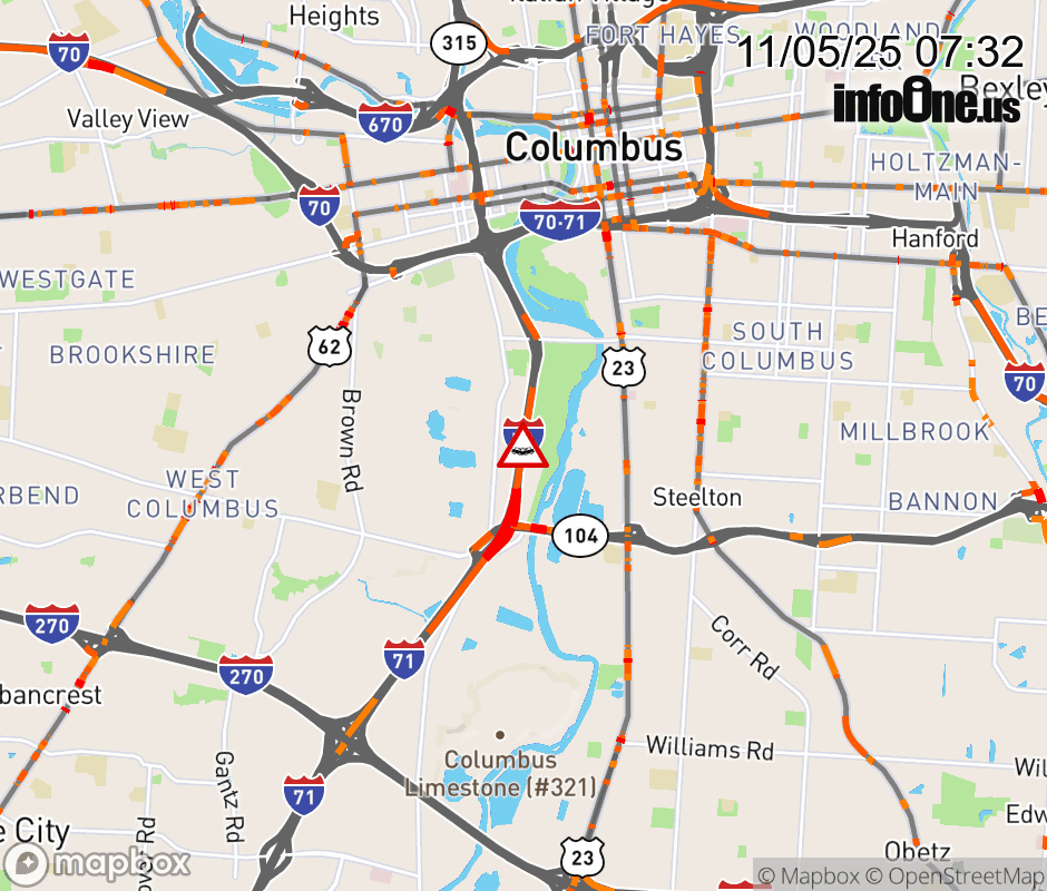 The left shoulder is blocked on I-71 North beyond SR-104/Frank Rd, due to a crash. Updated: Wed 11/5/25 7:32 AM EST ![]() Updated: Wed 11/5/25 7:32 AM EST |