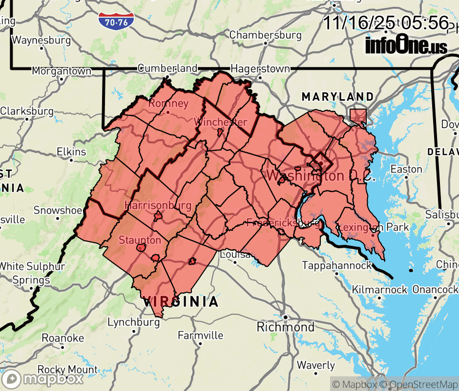 Canceled 11/16/25 5:50 PM Red Flag Warning issued November 16 at 5:55AM EST until November 16 at 6:00PM EST by NWS Baltimore MD/Washington DC * TIMING... Until 6 PM EST this evening. * WINDS... Northwest 20 to 30 mph with gusts up to 50 mph across northern and central Maryland, eastern West Virginia, and northern and northwestern Virginia. Northwest 15 to 25 mph with gusts up to 40 mph across southern Maryland and the central Virginia piedmont. * RELATIVE HUMIDITY... Minimum values of 15 to 30 percent, lowest across the north-central Virginia piedmont. * IMPACTS... Any fire that develops will catch and spread quickly. Outdoor burning is not recommended. * FUEL MOISTURE... 10-hour fuel moisture around 7 or 8 percent. ![]() |