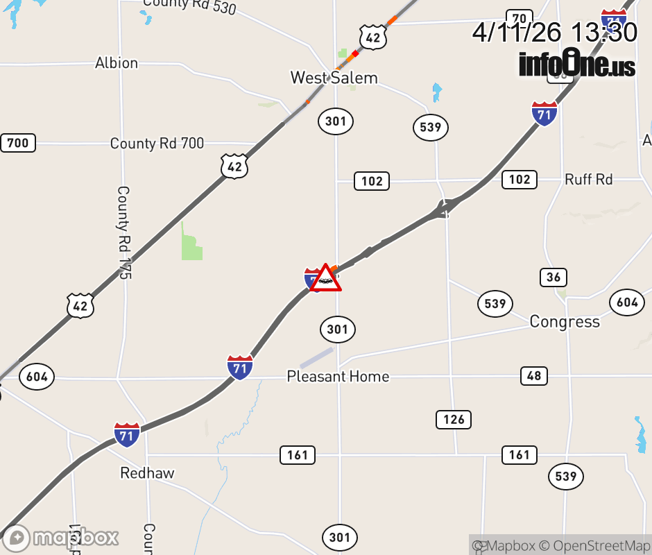 Expect lane closures on I-71 North at SR-301/W Salem, due to a crash. ![]() |