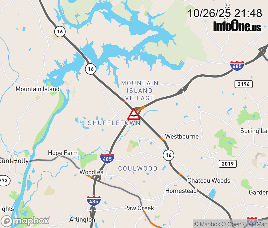 The left lane is closed near Exit 16 (NC-16). ![]() |