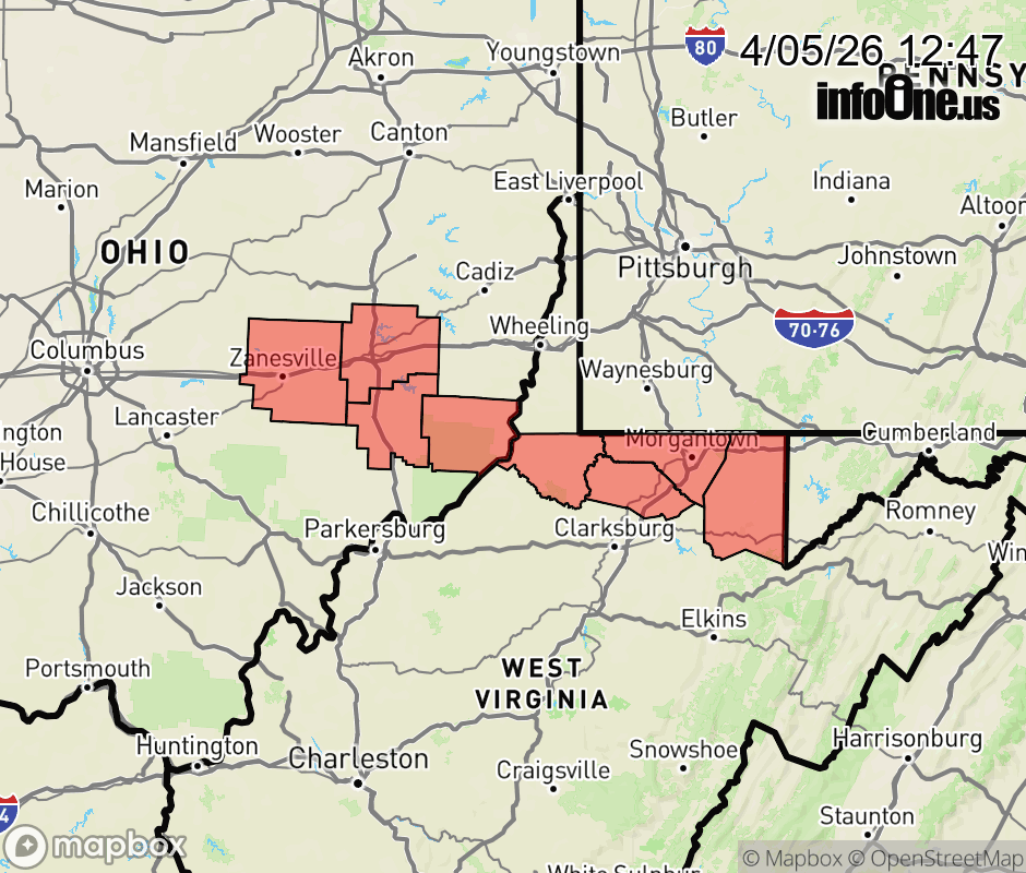 In West Virginia, Eastern Preston, Marion, Monongalia, Preston, Ridges of Eastern Monongalia and Northwestern Preston, and Wetzel Counties.
