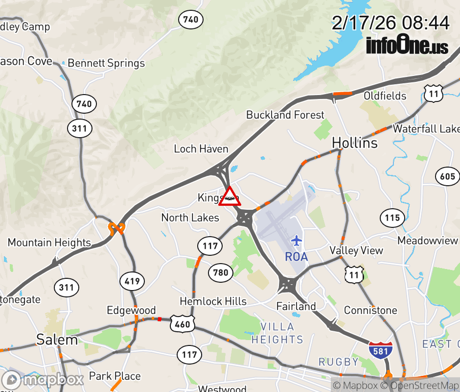 On I-581 at mile marker 6 in the County of Roanoke, motorists can expect delays due to a vehicle crash. The north left shoulder is closed. ![]() |