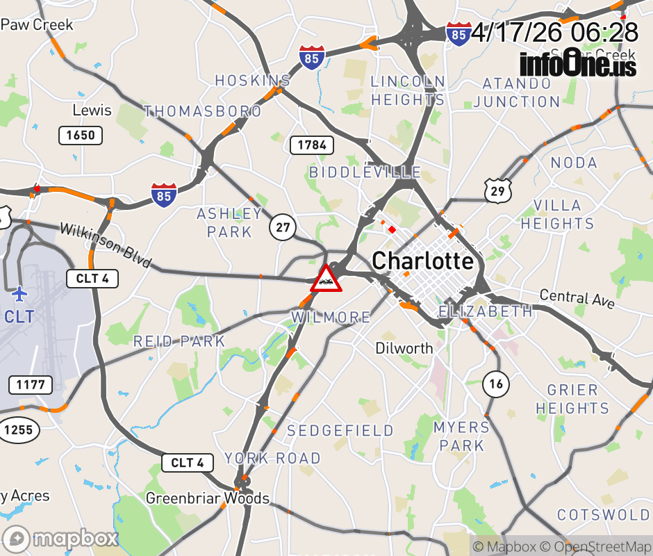The ramp lane to Exit 9b (I-277) is closed . ![]() |