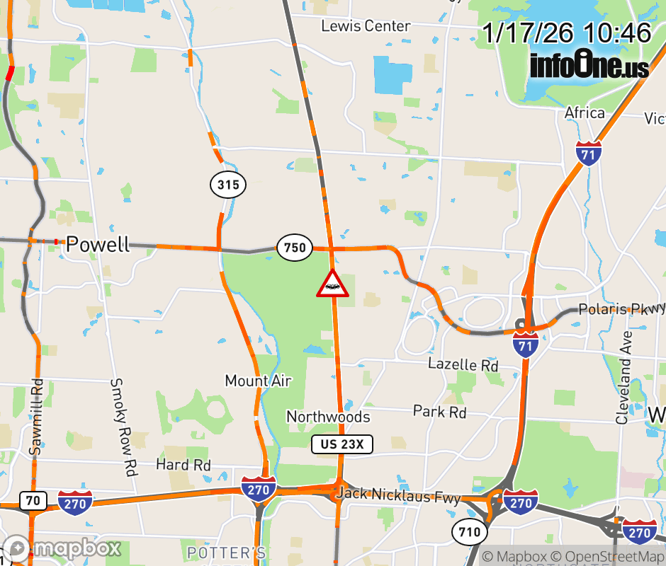The right lane is blocked on US-23 North at Green Meadows Dr S, due to a crash. ![]() |