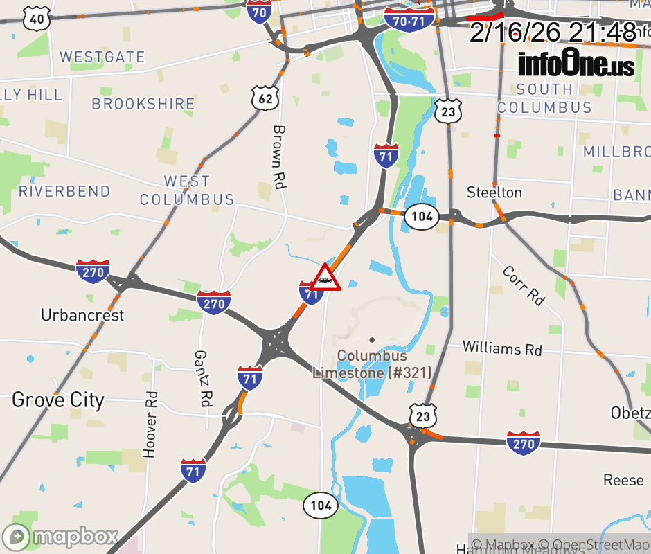 The 2 right lanes are blocked on I-71 South beyond SR-104/Frank Rd, due to a crash. ![]() |