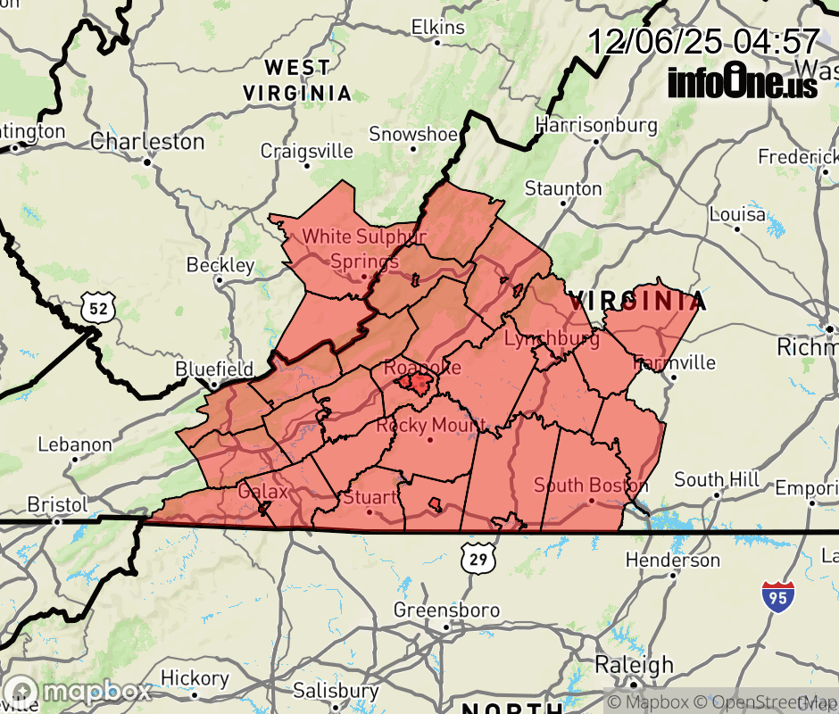 Canceled 12/6/25 8:00 AM Special Weather Statement issued December 6 at 4:55AM EST by NWS Blacksburg VA Temperatures across the area are just below freezing. This has allowed for melted snow to refreeze on untreated roads, parking lots and sidewalks. Patchy freezing fog may also result in icing on elevated objects and car windshields. For your safety, prepare accordingly. If traveling, please slow down, and leave plenty of room between you and the vehicle in front of you. If you venture outdoors, use extra caution when walking. Ice on sidewalks and steps will be hard to see. ![]() |