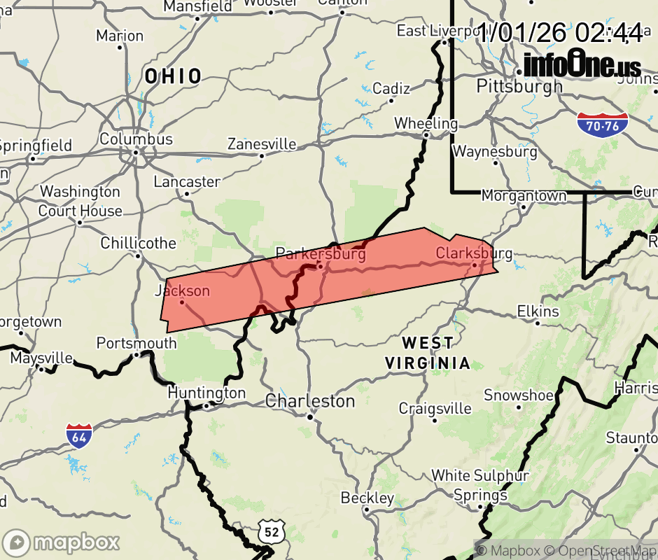Canceled 1/1/26 3:15 AM Snow Squall Warning issued January 1 at 2:43AM EST until January 1 at 3:15AM EST by NWS Charleston WV The National Weather Service in Charleston West Virginia has issued a * Snow Squall Warning for... Meigs County in southeastern Ohio... Southern Washington County in southeastern Ohio... Northeastern Gallia County in southeastern Ohio... Jackson County in southeastern Ohio... Southern Vinton County in southeastern Ohio... Southern Athens County in southeastern Ohio... Northern Wirt County in northwestern West Virginia... North central Jackson County in northwestern West Virginia... Wood County in northwestern West Virginia... Harrison County in northern West Virginia... Pleasants County in northwestern West Virginia... Ritchie County in northwestern West Virginia... North central Mason County in western West Virginia... Doddridge County in northern West Virginia... Tyler County in northern West Virginia... * Until 315 AM EST. * At 242 AM EST, a dangerous snow squall was located along a line extending from near Waverly to 7 miles southwest of Mannington, moving southeast at 25 mph. HAZARD...Intense bursts of heavy snow. Gusty winds leading to blowing snow and visibility rapidly falling to less than one-quarter mile. Wind gusts up to 35 mph. SOURCE...Radar indicated. IMPACT...Travel will become difficult and potentially dangerous within minutes. This includes the following highways... Interstate 79 between mile markers 115 and 128. Interstate 77 in West Virginia between mile markers 158 and 186. Route 50 in West Virginia between mile markers 1 and 82. Locations impacted include... Parkersburg, Athens, Clarksburg, Marietta, Belpre, Jackson, Wellston, Harrisville, St. Marys, Pomeroy, Mcarthur, Oak Hill, Albany, Elizabeth, Coolville, Rutland, Forked Run State Park, Vienna, Bridgeport, and Williamstown. ![]() |