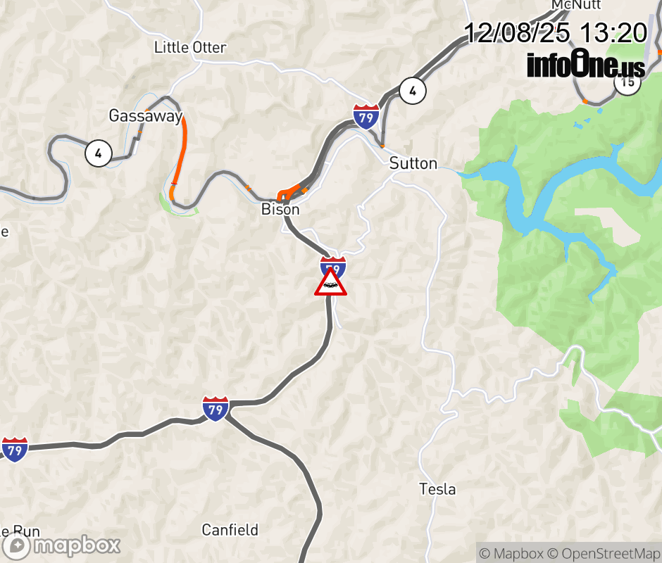 Vehicle Crash on I-79S at Mile Marker 60.0. The southbound right lane is closed. Updated: Mon 12/8/25 1:20 PM EST ![]() Updated: Mon 12/8/25 1:20 PM EST |