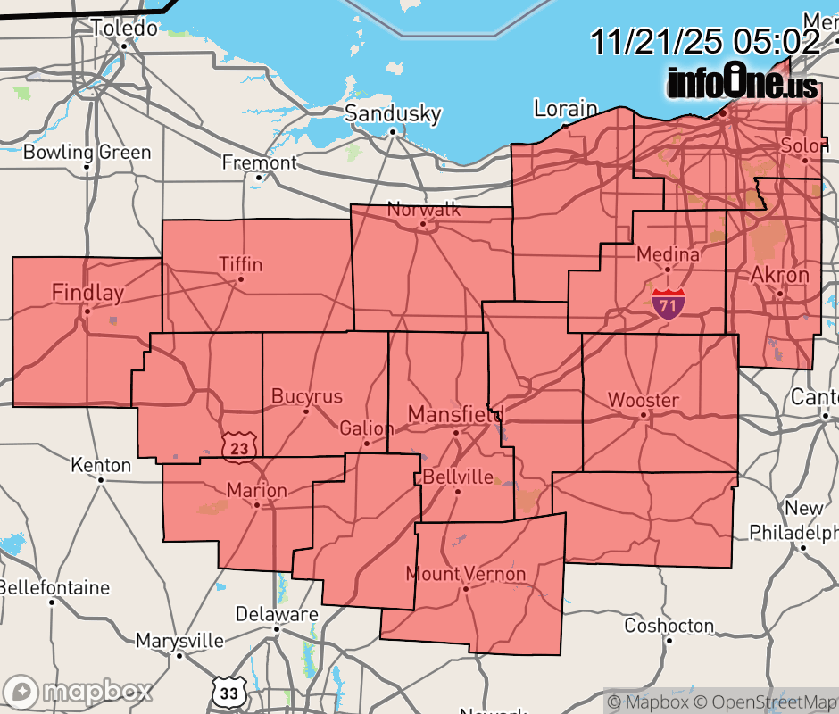 Canceled 11/21/25 9:00 AM Special Weather Statement issued November 21 at 4:58AM EST by NWS Cleveland OH Areas of fog will continue to reduce visibilities to 2 miles or less into mid-morning. Motorists should use caution during the Friday morning commute and be prepared for rapidly changing visibilities. ![]() |