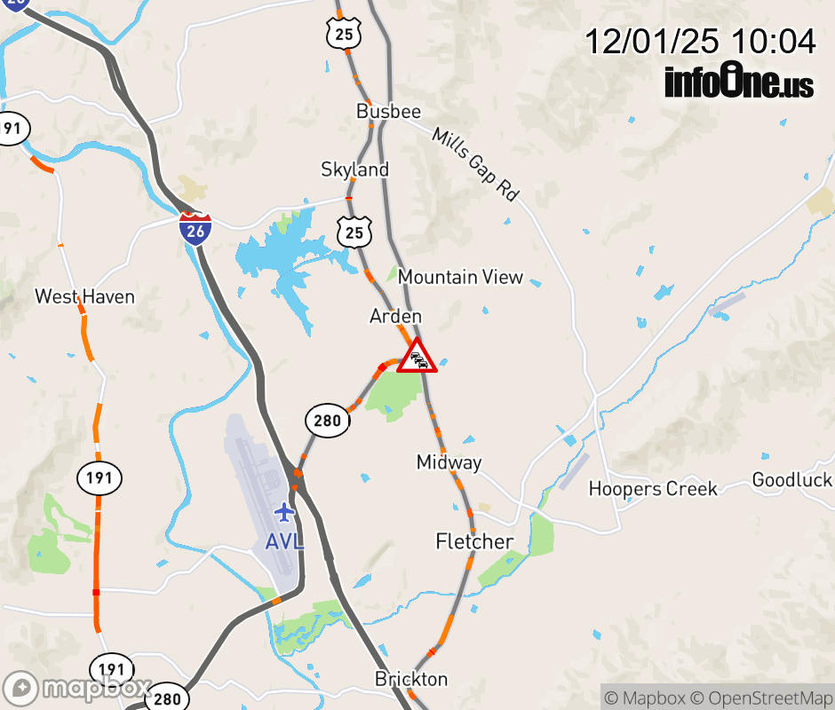 Canceled 12/1/25 10:10 AM Location: Hendersonville Road (US-25N), NC Road Obstruction.