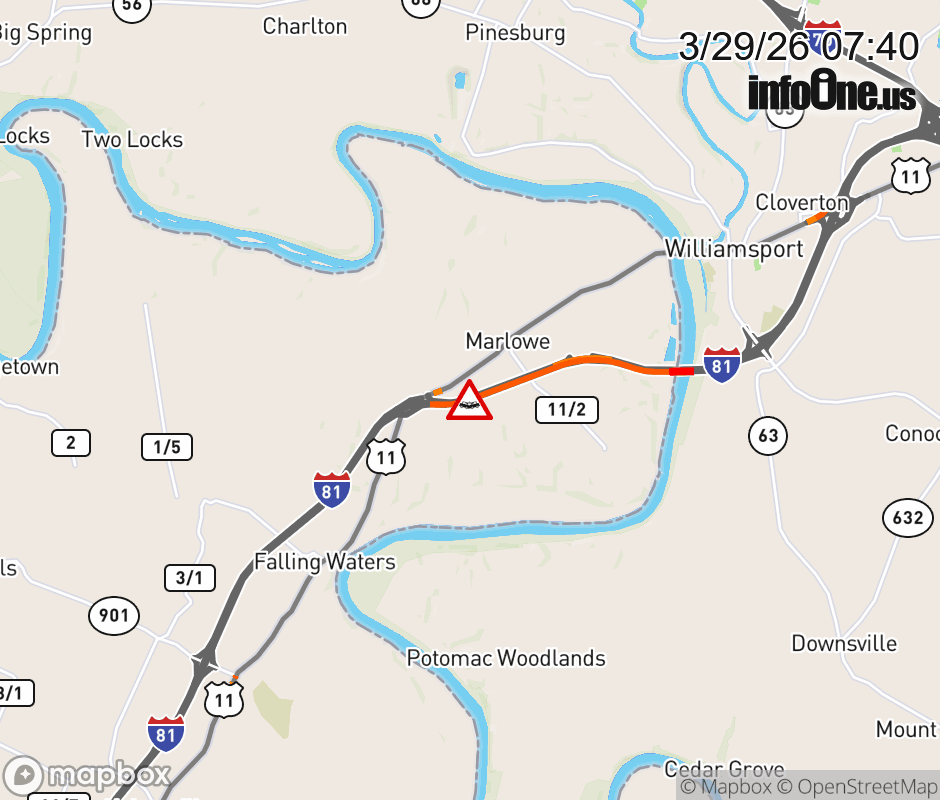 Vehicle Crash on I-81N at Mile Marker 24.0. The northbound road is closed. ![]() |
