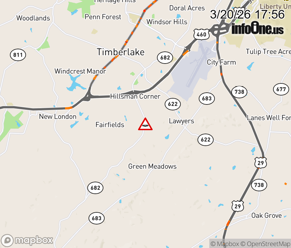On Rt. 1160 East in the County of Campbell, in the vicinity of Leesville Rd, motorists can expect delays due to a tractor trailer crash. Lane closures exist. Updated: Fri 3/20/26 5:56 PM EDT ![]() Updated: Fri 3/20/26 5:56 PM EDT |