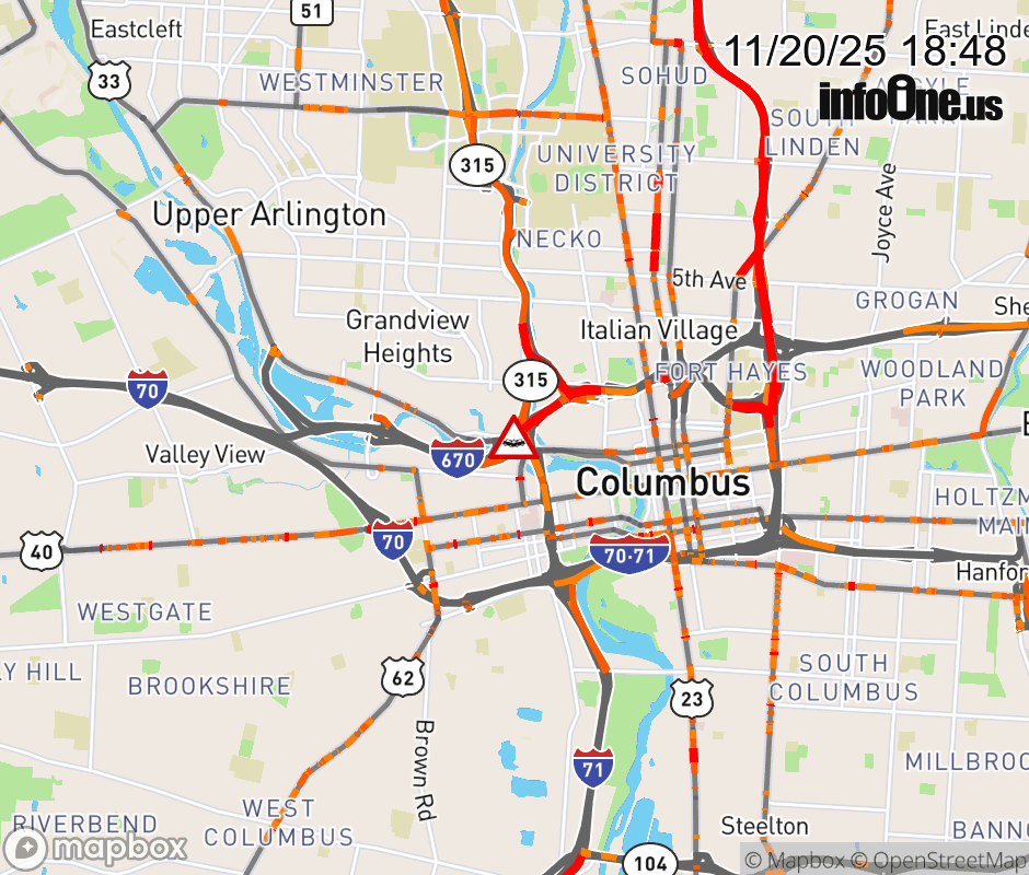 The right lane is blocked on I-670 East at SR-315 North, due to a crash. Updated: Thu 11/20/25 6:48 PM EST ![]() Updated: Thu 11/20/25 6:48 PM EST |