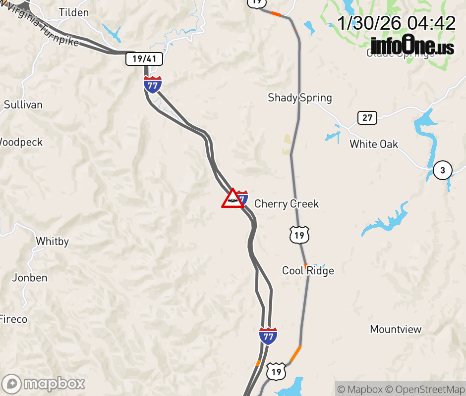 Canceled 1/30/26 4:44 AM Location: I-77 at MM 33.5, WV Accident.