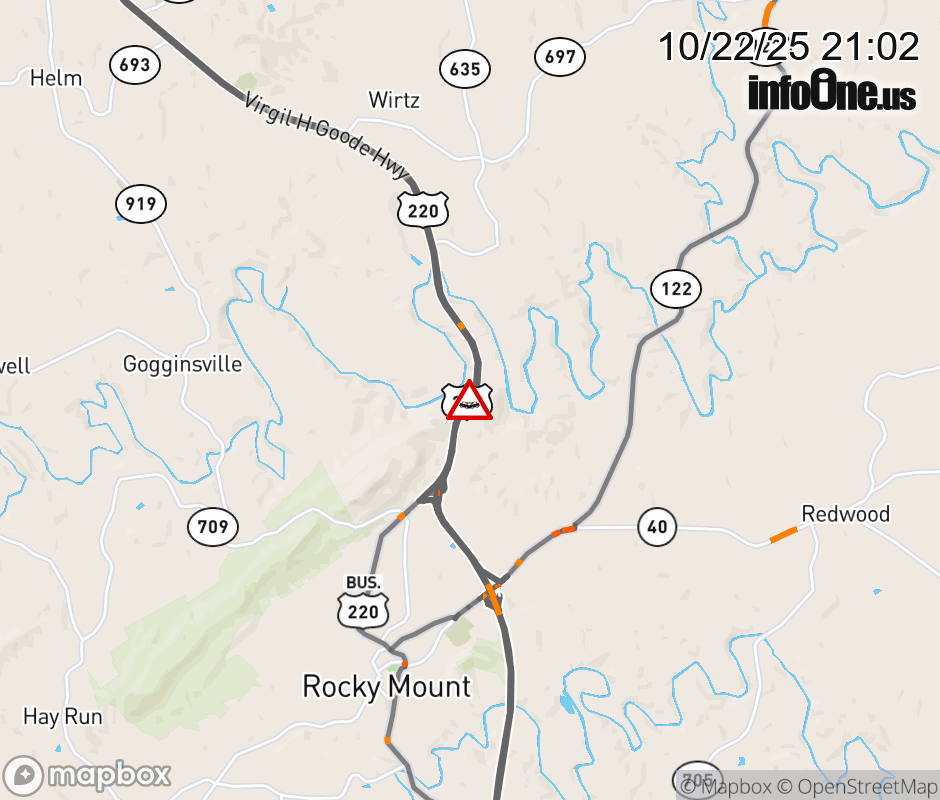 On US-220 North in the County of Franklin, in the vicinity of Wooddale Dr; Rt. 1055E/W (Franklin County), motorists can expect delays due to a vehicle crash. Lane closures exist. ![]() |