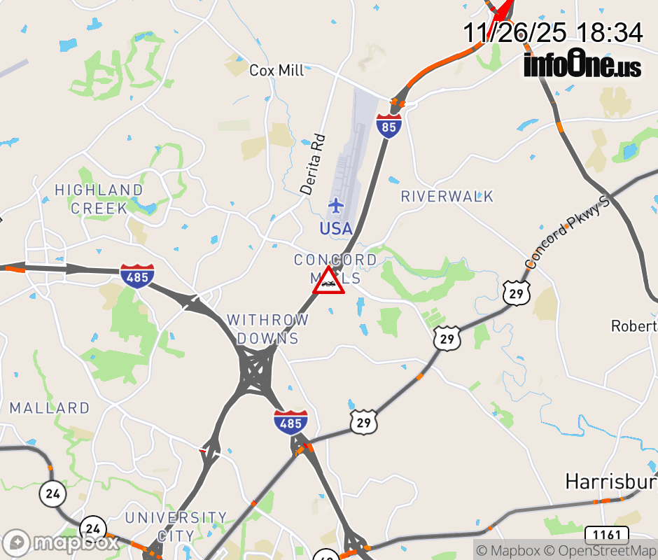 The left ramp lane is closed at Exit 49(Bruton Smith Blvd.). ![]() |