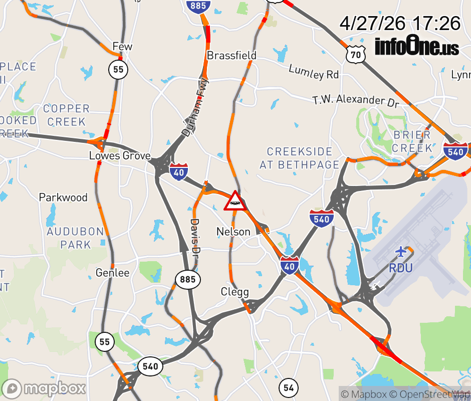 The right lane is closed near Exit 281 (S Miami Blvd). ![]() |