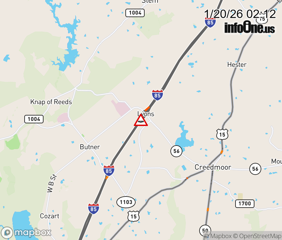 The road is closed at Exit 191 (NC 56/Butner Creedmore Road). ![]() |