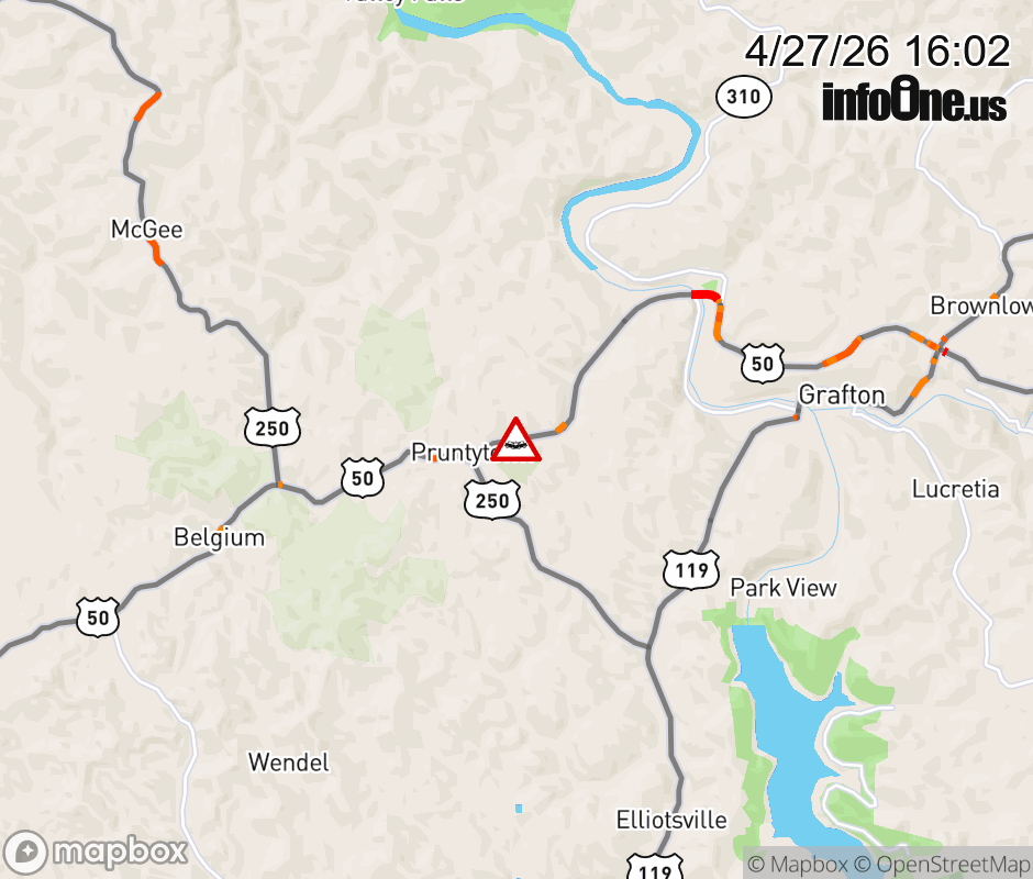 Vehicle Crash on US-50 (2000 BLK of George Washington Hwy) in Pruntytown/Grafton. ![]() |