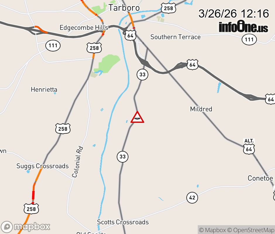 The shoulder is closed at S. Shiloh Farm Rd. Updated: Thu 3/26/26 12:16 PM EDT ![]() Updated: Thu 3/26/26 12:16 PM EDT |