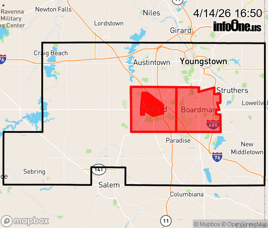 Canceled 4/14/26 6:10 PM Mahoning County has 1 power outage affecting 2271 customers. Ohio Edison 2271 without power Boardman Township: Customers affected: 1934 (9%) Estimated repair: Tue 8:30 PM Canfield Township: Customers affected: 302 (8%) Estimated repair: Tue 8:30 PM Canfield: Customers affected: 27 (1%) Estimated repair: Tue 8:30 PM Youngstown: Customers affected: 19 (< 1%) Estimated repair: Tue 8:30 PM Updated: Tue 4/14/26 4:50 PM EDT ![]() |