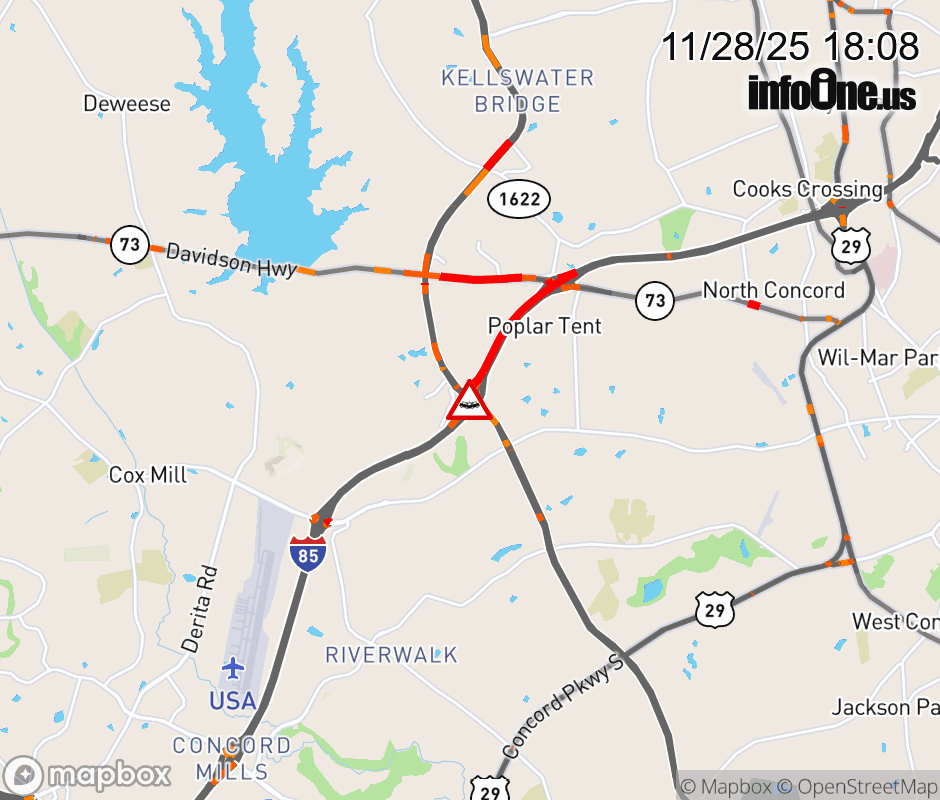 The right shoulder is closed at Exit 54 (George W Liles Pkwy). Updated: Fri 11/28/25 6:08 PM EST ![]() Updated: Fri 11/28/25 6:08 PM EST |