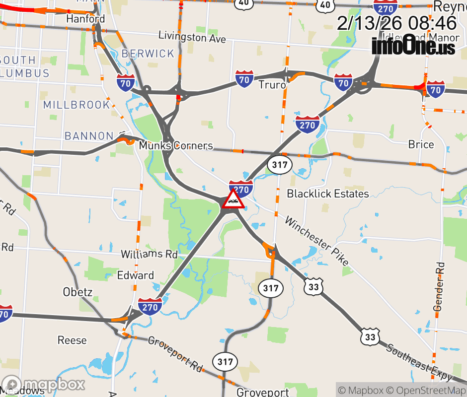 The right lane is blocked on I-270 South at US-33 West, due to a disabled vehicle. ![]() |