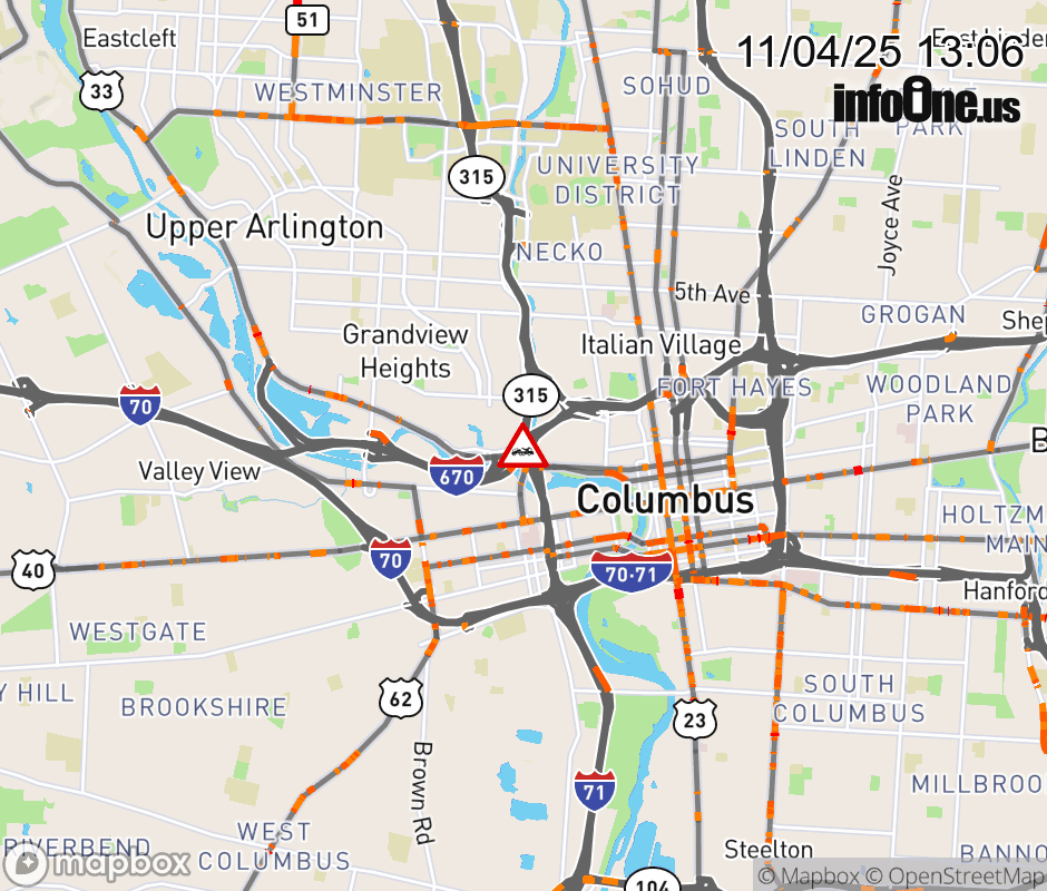 The right shoulder is blocked on I-670 East at SR-315 North, due to a disabled vehicle. Updated: Tue 11/4/25 1:06 PM EST ![]() |