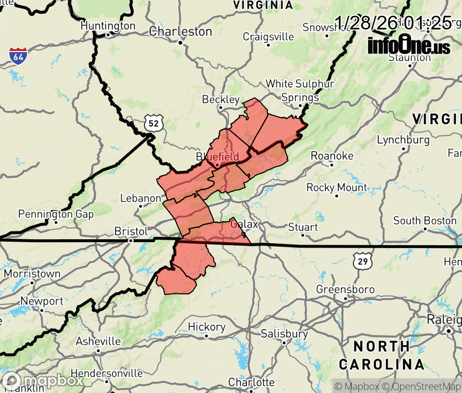 Canceled 1/28/26 1:43 PM Cold Weather Advisory issued January 28 at 1:24AM EST until January 29 at 11:00AM EST by NWS Blacksburg VA * WHAT... Very cold wind chills as low as 10 below expected. * WHERE... In North Carolina, Ashe and Watauga Counties. In Virginia, Bland, Giles, Grayson, Smyth, and Tazewell Counties. In West Virginia, Mercer, Monroe, and Summers Counties. * WHEN... From 7 PM this evening to 11 AM EST Thursday. * IMPACTS... The cold wind chills as low as 10 below zero could result in hypothermia if precautions are not taken. ![]() |