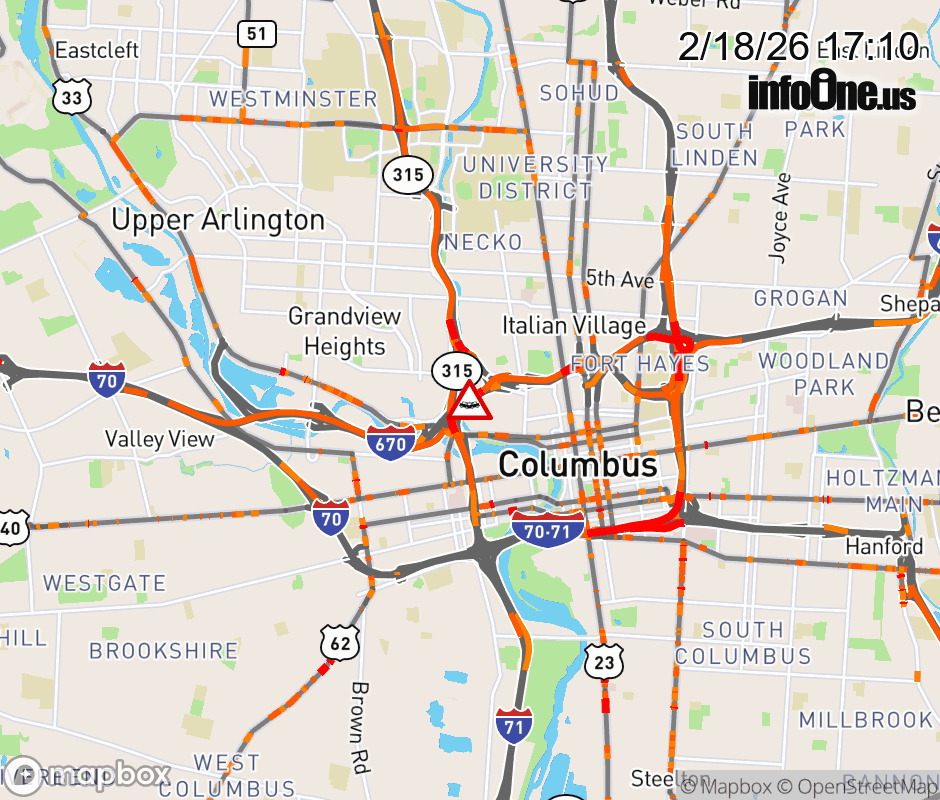 The right lane is blocked on I-670 West at SR-315 South, due to a crash. ![]() |