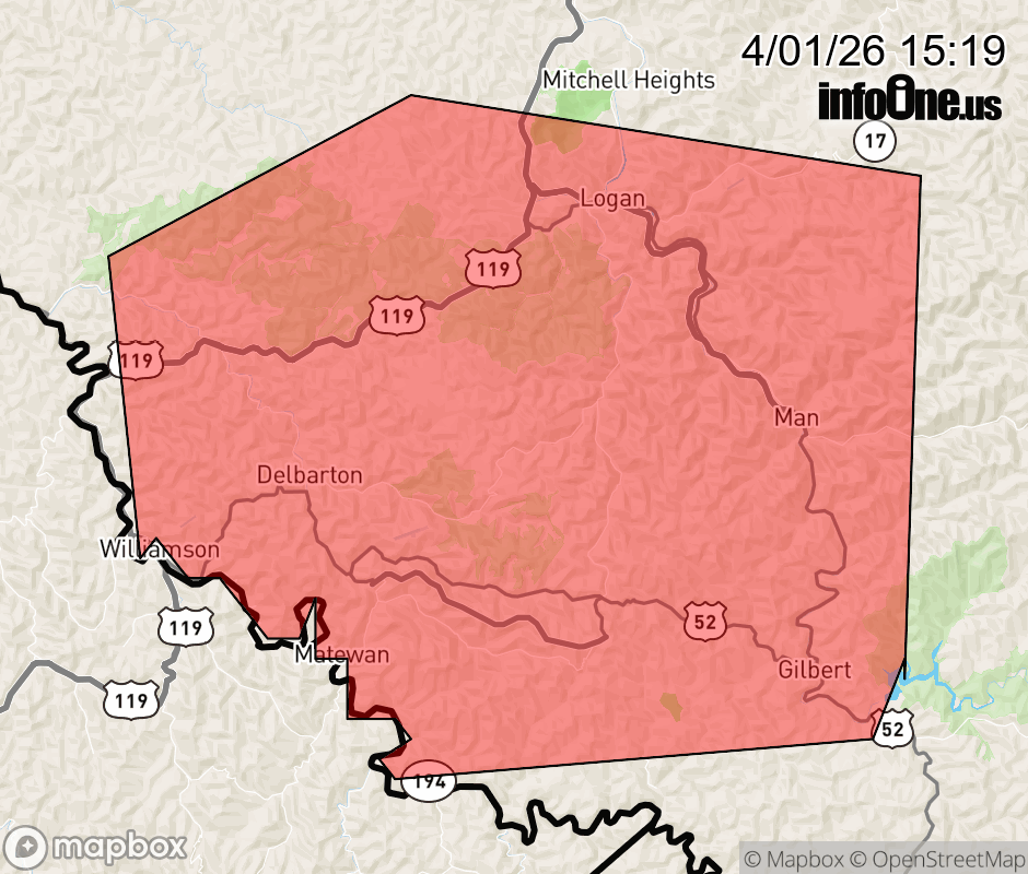Canceled 4/1/26 3:45 PM Special Weather Statement issued April 1 at 3:18PM EDT by NWS Charleston WV At 318 PM EDT, Doppler radar was tracking a strong thunderstorm over Delbarton, or near Williamson, moving east at 25 mph. HAZARD...Wind gusts up to 50 mph and pea size hail. SOURCE...Radar indicated. IMPACT...Gusty winds could knock down tree limbs and blow around unsecured objects. Minor hail damage to vegetation is possible. Locations impacted include... Williamson, Logan, Man, Delbarton, R.d. Bailey Lake, Mount Gay-Shamrock, Holden, Mallory, Red Jacket, Chattaroy, Hinch, Gilbert Creek, Amherstdale-Robinette, Matewan, Gilbert, West Logan, Mount Gay, Chauncey, Myrtle, and Bruno. This includes Route 119 between mile markers 2 and 29. ![]() |